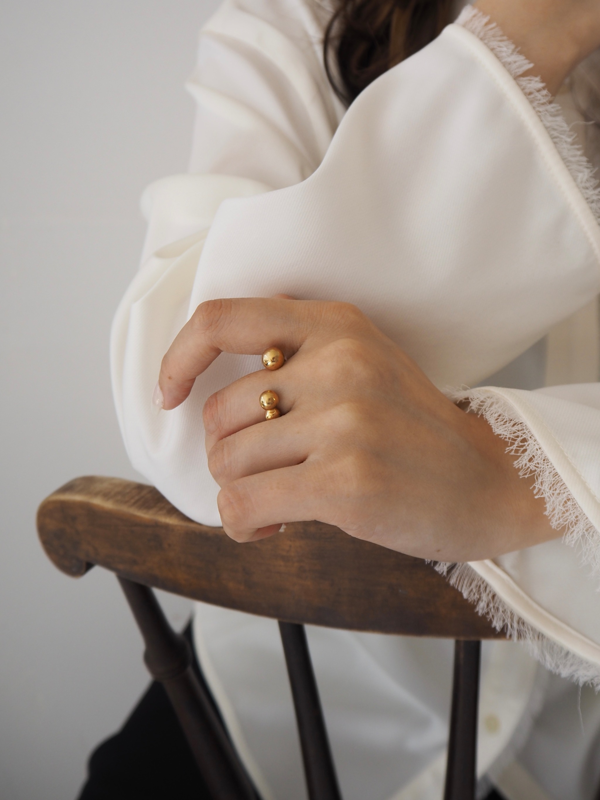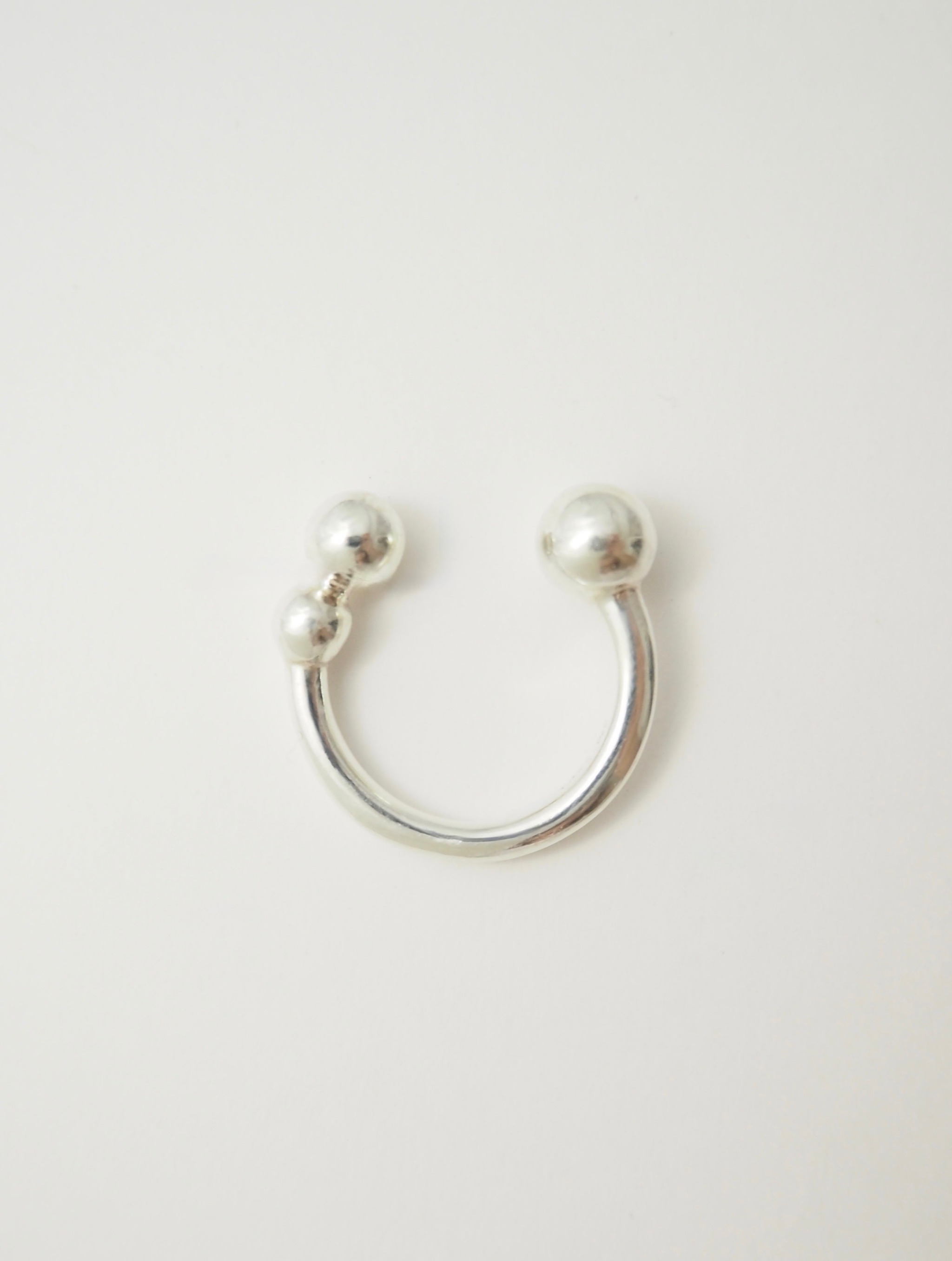 O ringは、正面から見て大きさの異なる丸が3つ、指を囲むように施されている少しユニークな見た目のリングです。