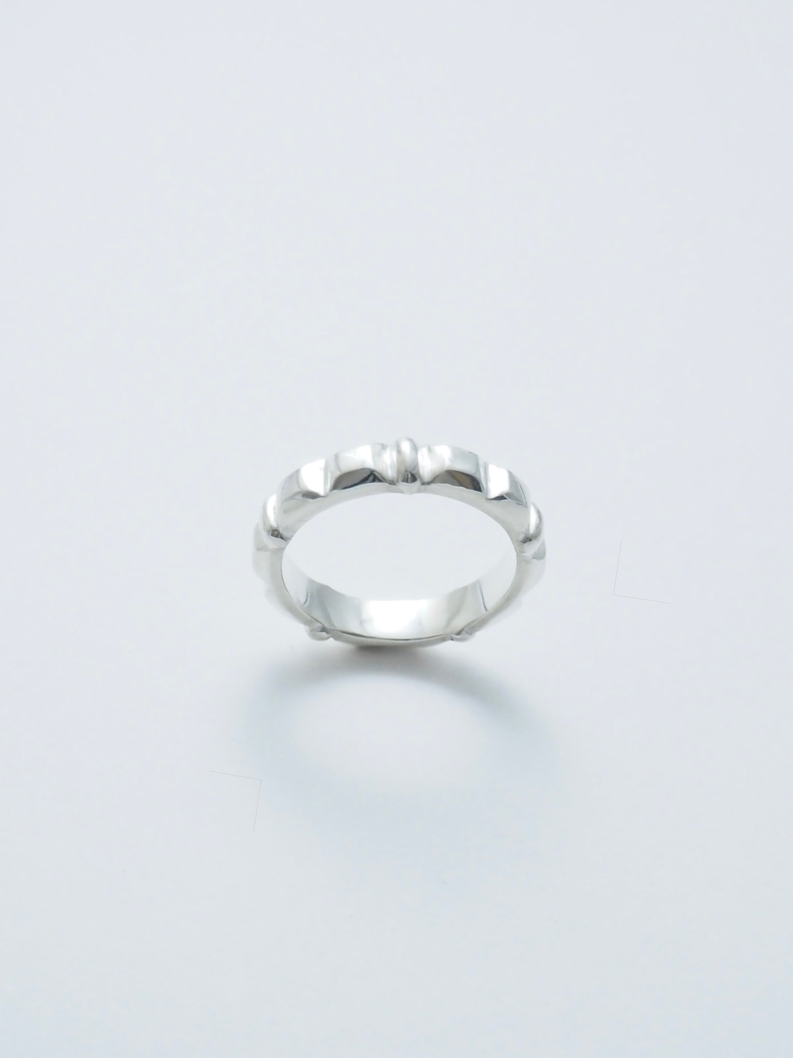 出窓(bay window)から着想を得て作成したリングです。 エッジをきかせ、一つだけでもスタイリングのアクセントになるアイテムです。 ※サイズ・カラーのご確認をお願いいたします。 ※サイズ表記に該当のサイズが見つからないお客様は、お手数をおかけしますが【contact】よりお問い合せをお願いいたします。 material:silver925,silver925 K18 gold plating size:#7,#9,#11 color:silver,gold