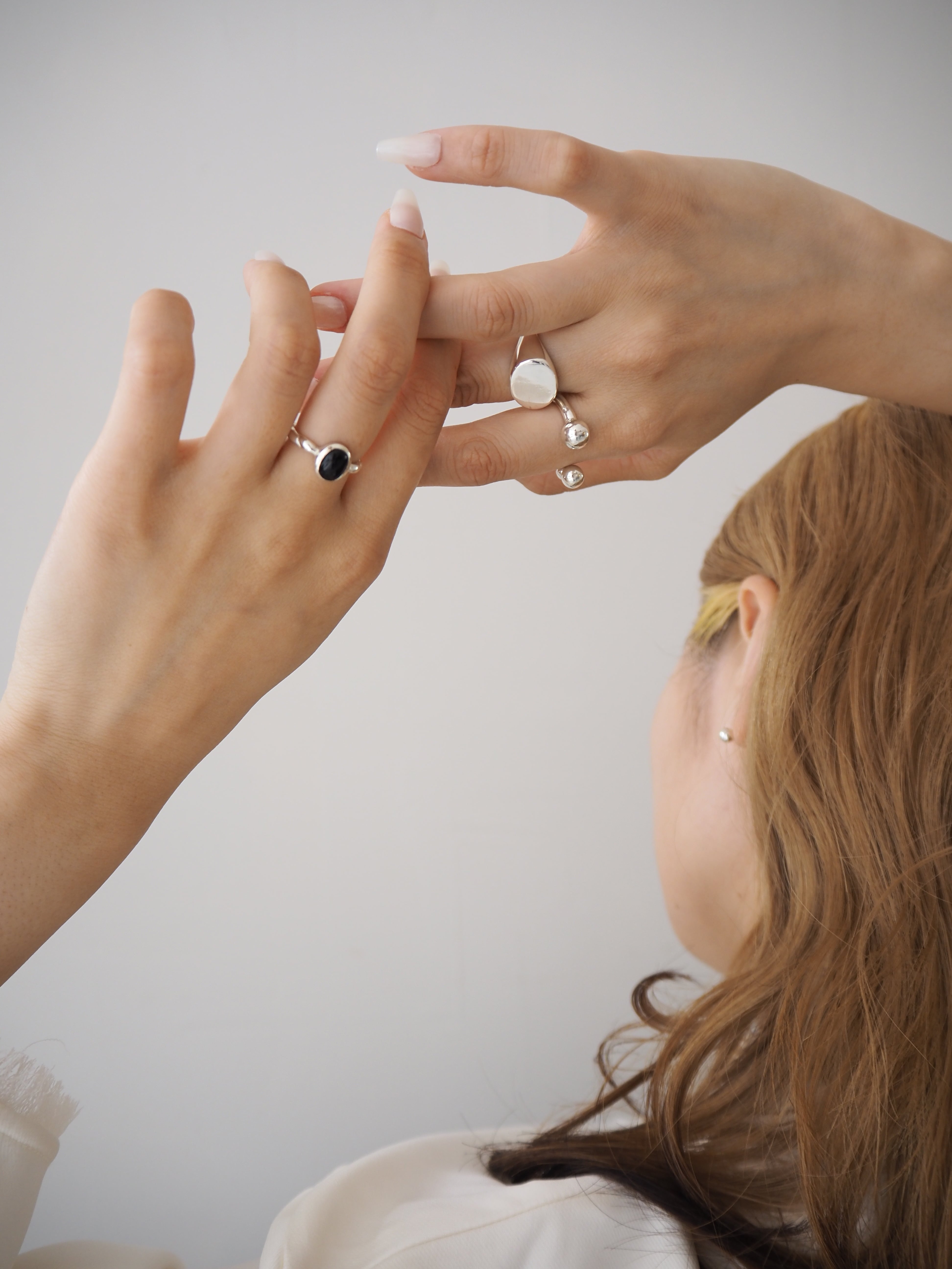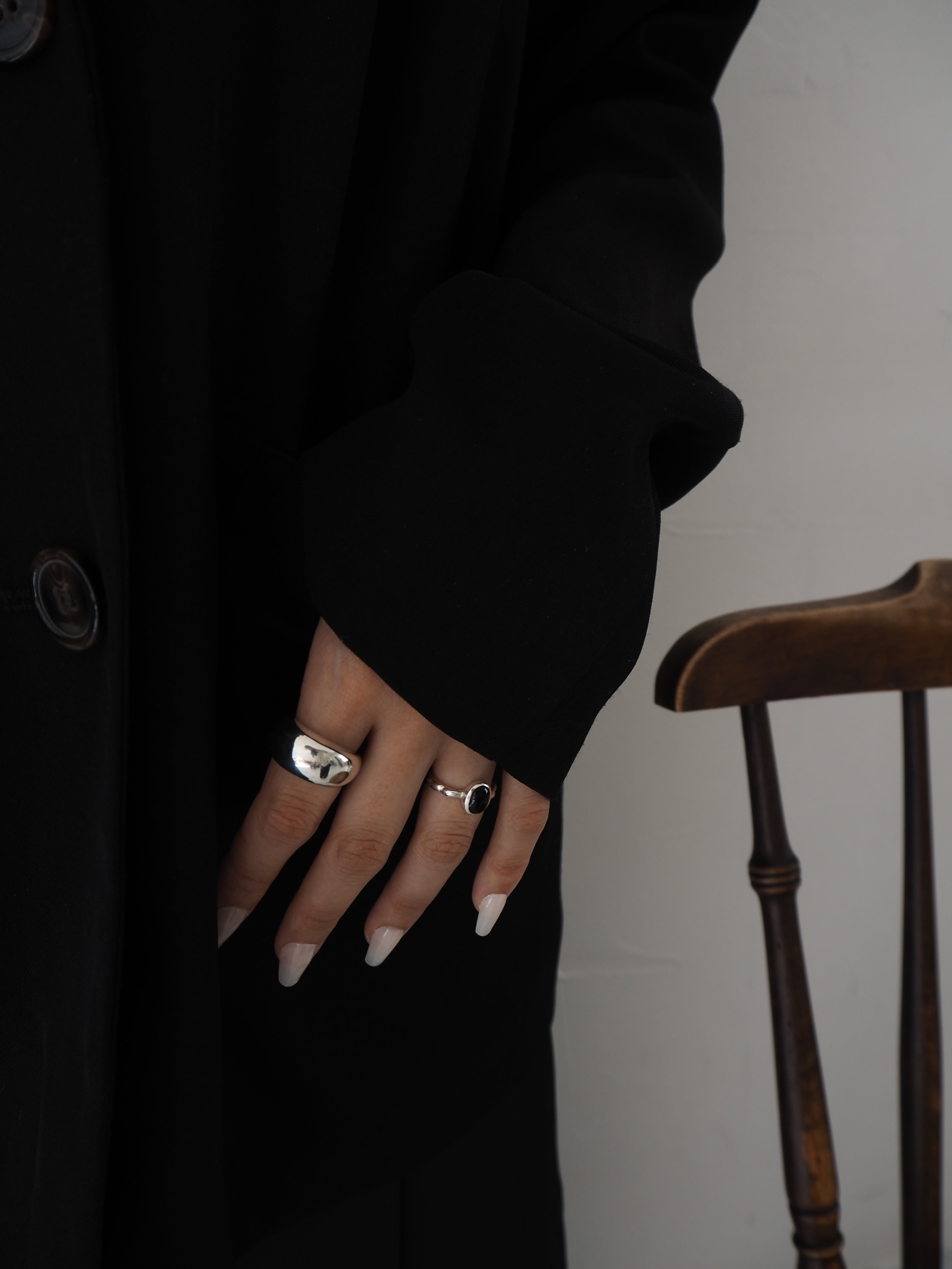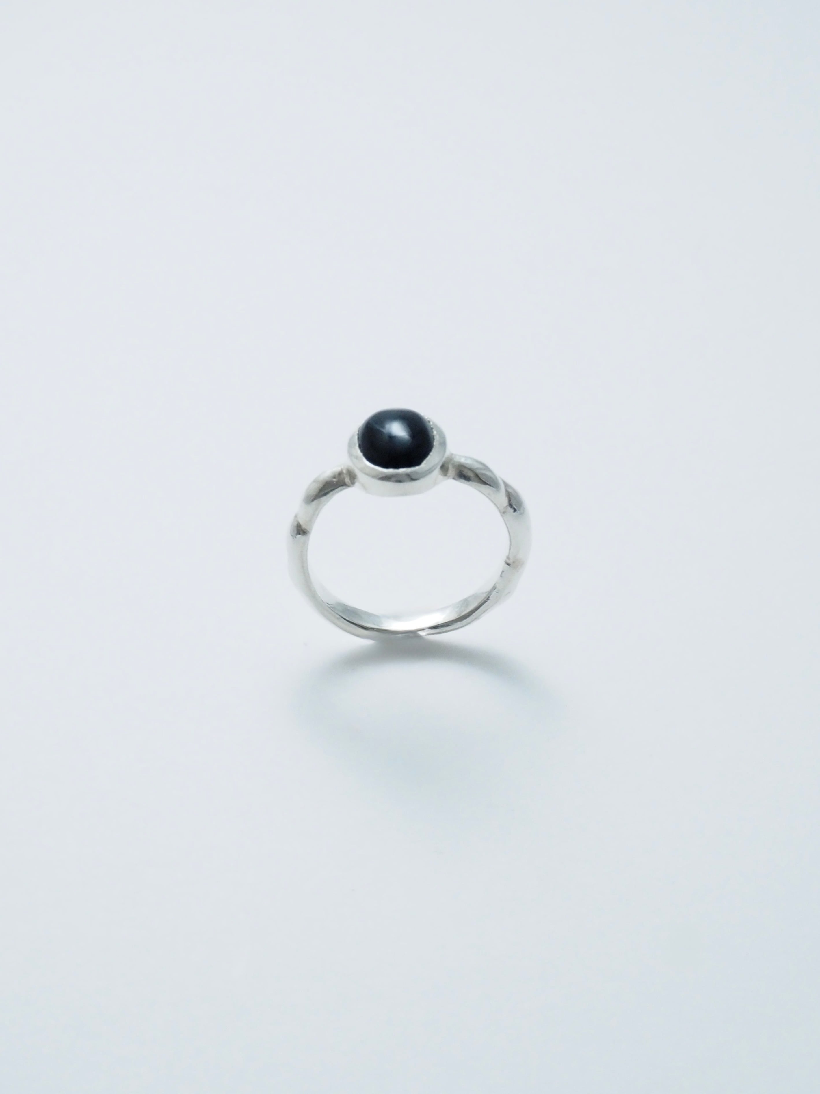 オニキスを主役にした柔らかな曲線が特徴のリングです。 スタイリングのアクセントとして存在感を放ちつつ、リングとの着け合わせとしても調和するアイテムです。 ※サイズのご確認をお願いいたします。 ※サイズ表記に該当のサイズが見つからないお客様は、お手数をおかけしますが【contact】よりお問い合せをお願いいたします。 material:silver925,black onyx size:#7,#9,#11