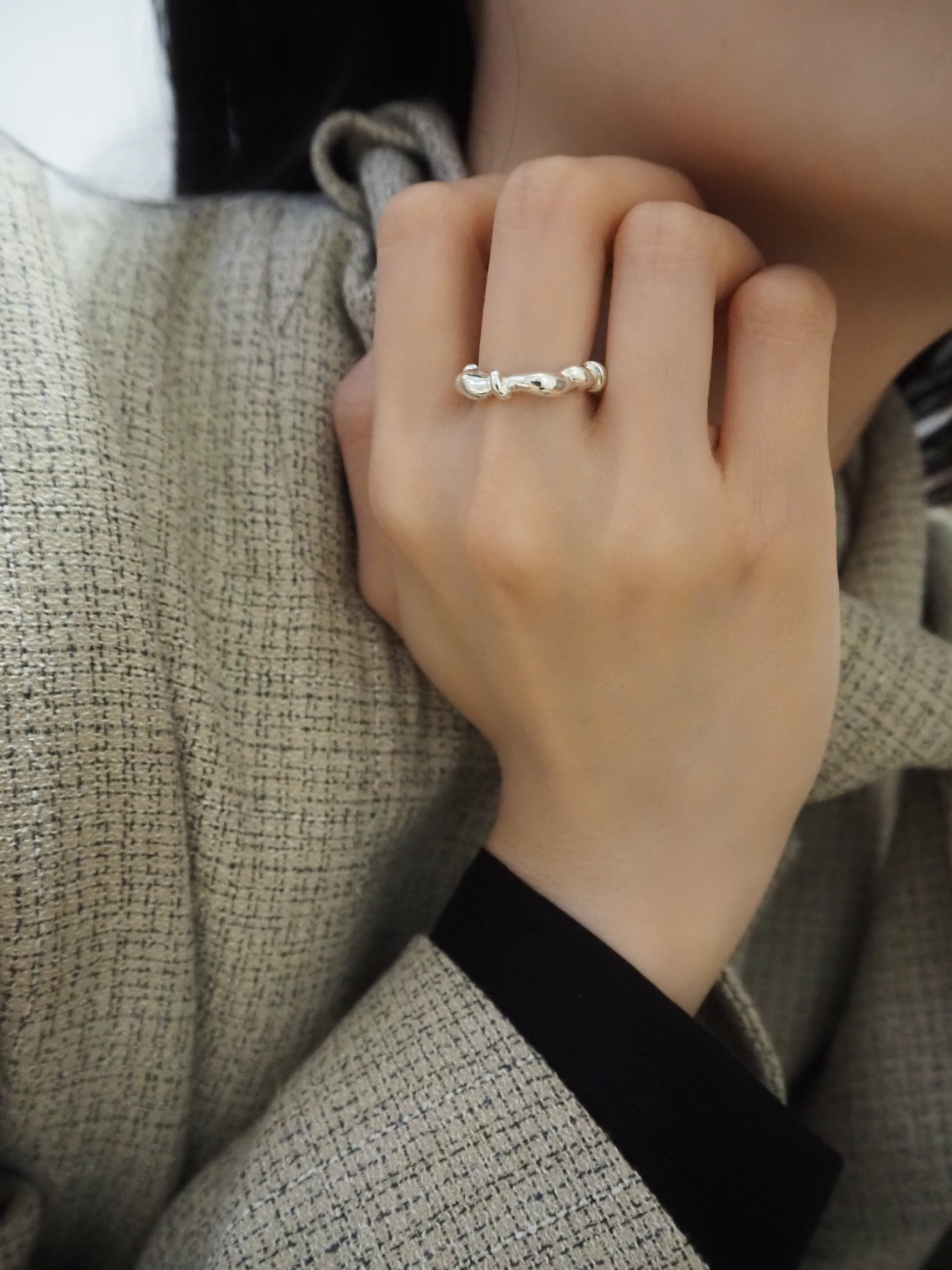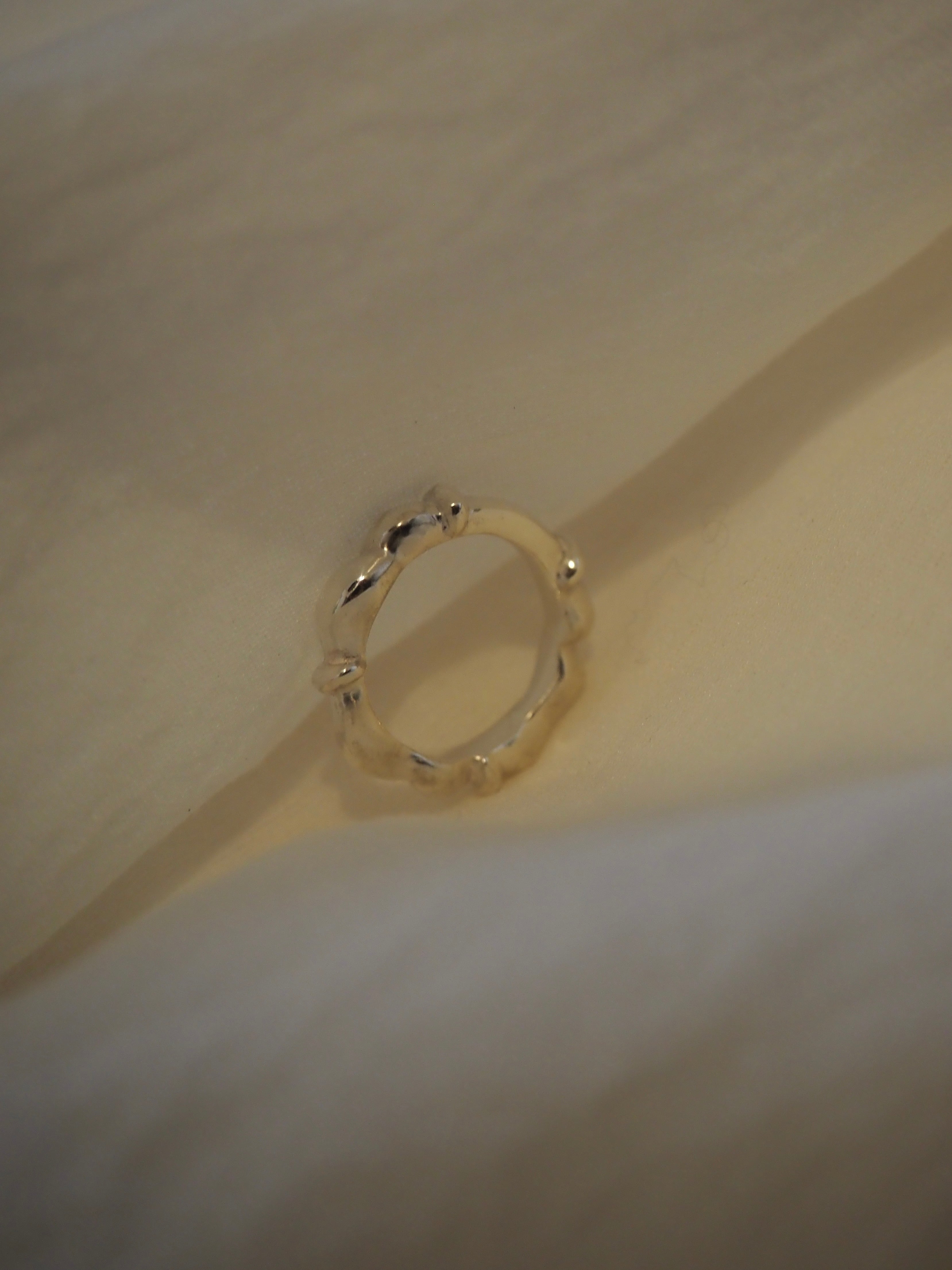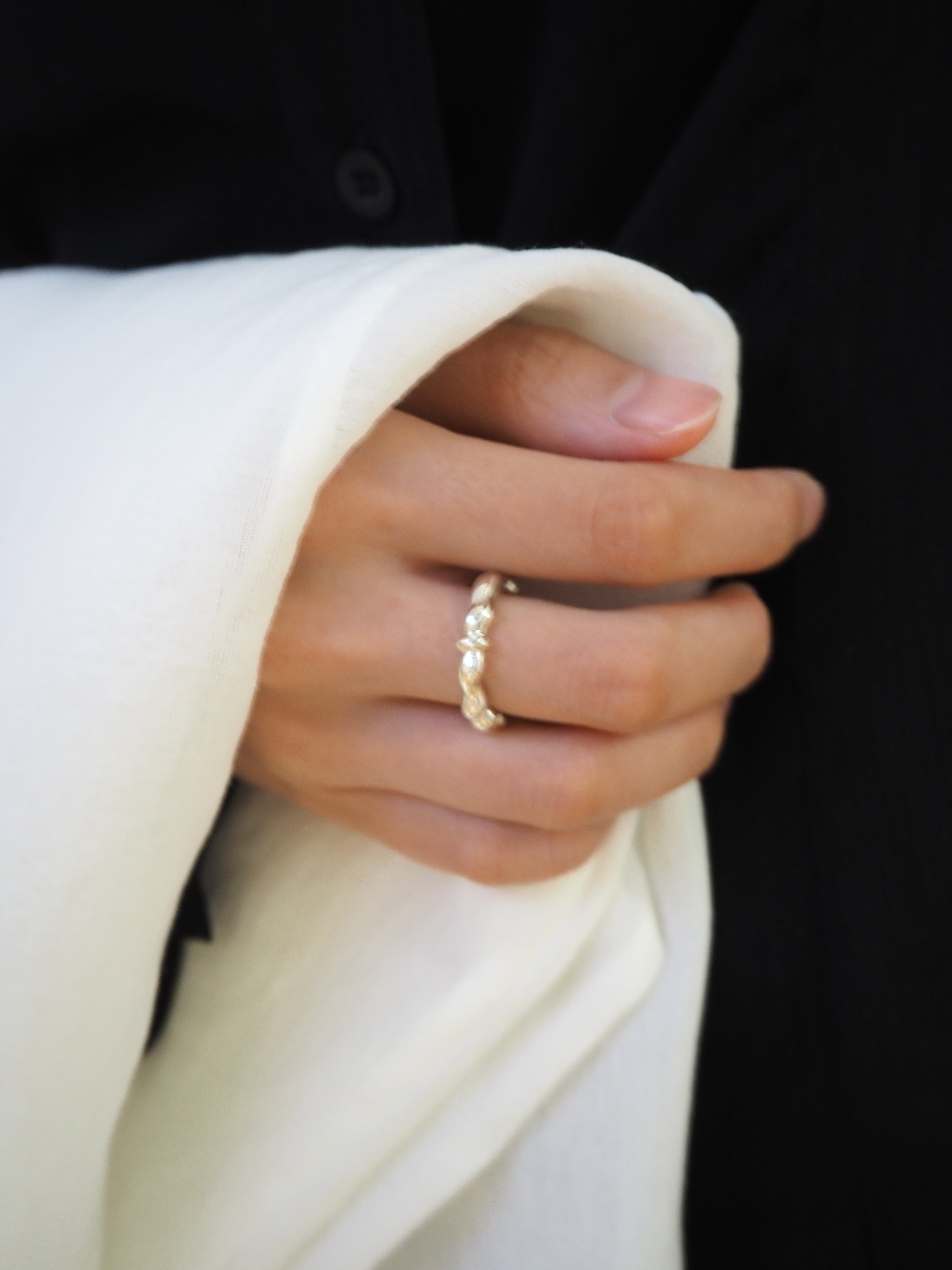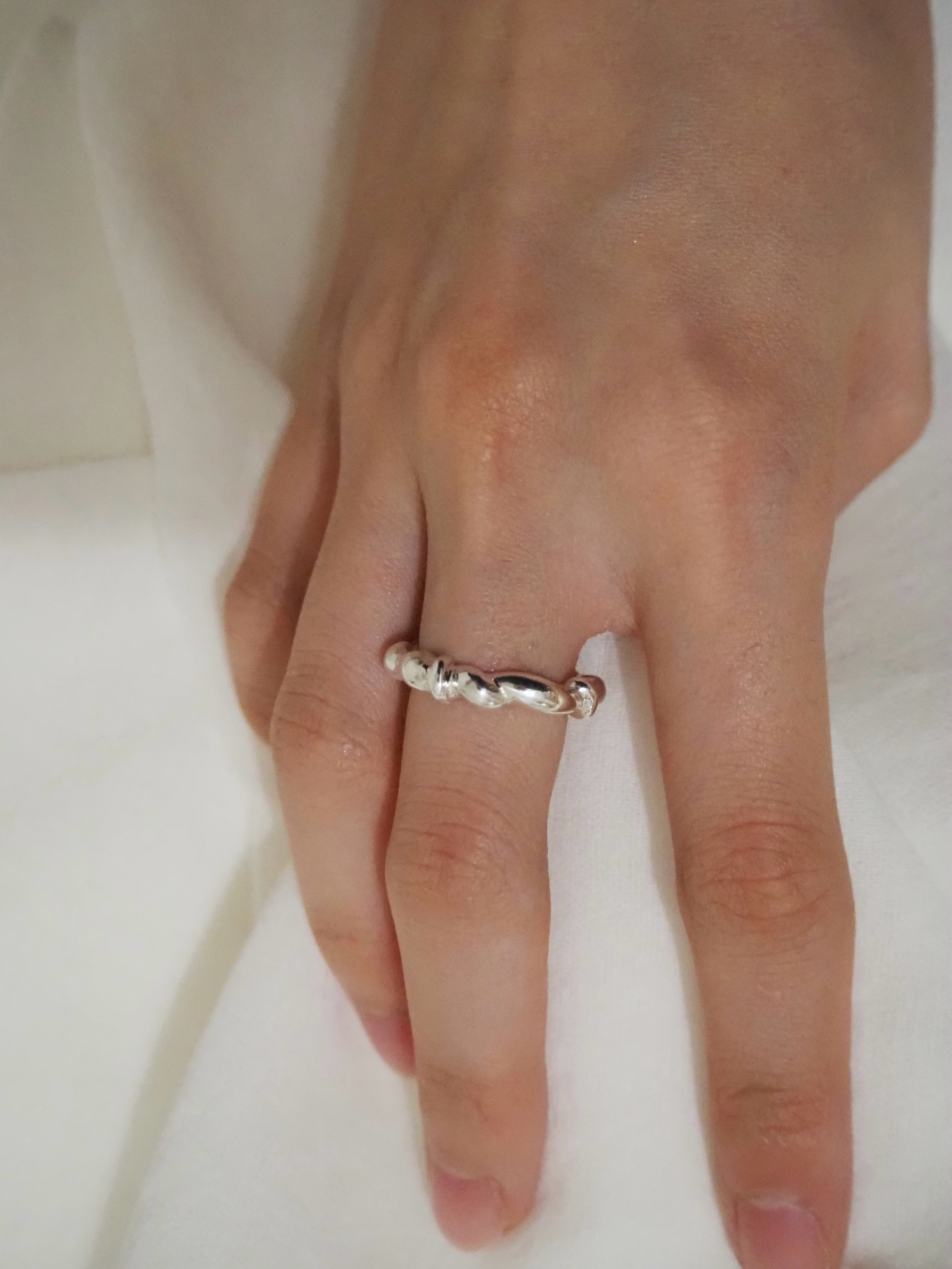 瀬戸内海の穏やかな海からインスピレーションを受けたリングです。 四国で一年暮らしていた記憶をもとに、リングを4面に分け春夏秋冬の移り変わる波形を表現しています。 material:silver925 size:#7, #9, #11